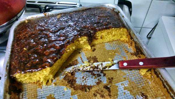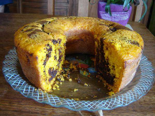 - Asse em forno brando em forma untada e enfarinhada por 40 minutos ou até que enfiando um palito ele saia limpo.