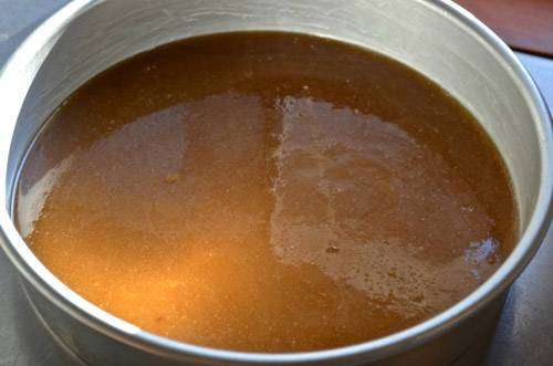 - Faça furos no bolo com o garfo e regue com a calda ainda quente.