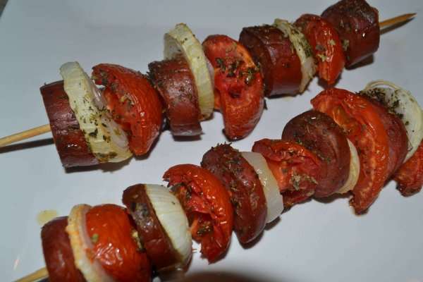 Espetinho de calabresa Assado
