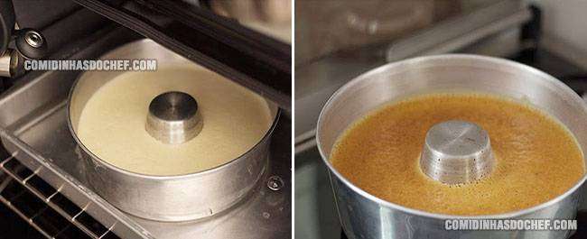 - Em seguida retire a fôrma com cuidado para que a calda não se espalhe.