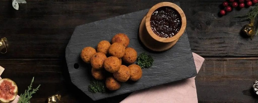 - Bolinho de Pernil: um petisco delicioso e fácil de fazer, servido com geleia de maçã com pimenta.