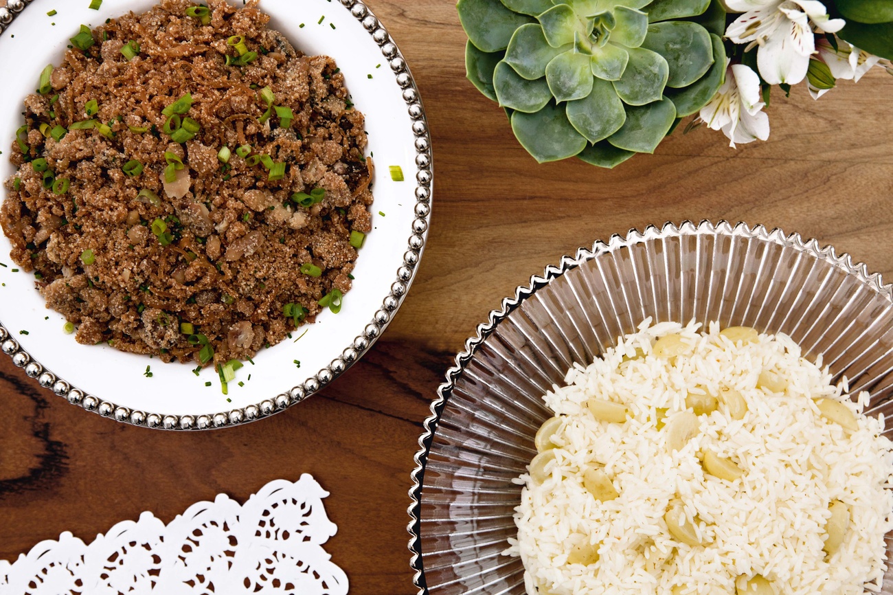 - 2 xícaras (chá) de arroz branco, lavado e escorrido