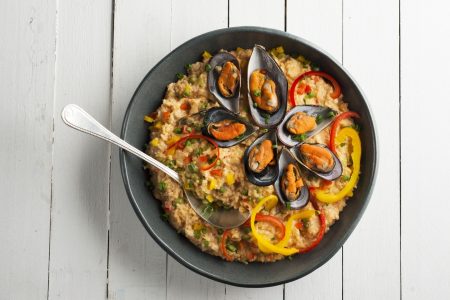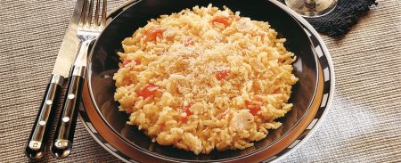 - Retire do fogo e misture levemente para soltar os grãos. Mantenha o arroz aquecido até a hora de servir.