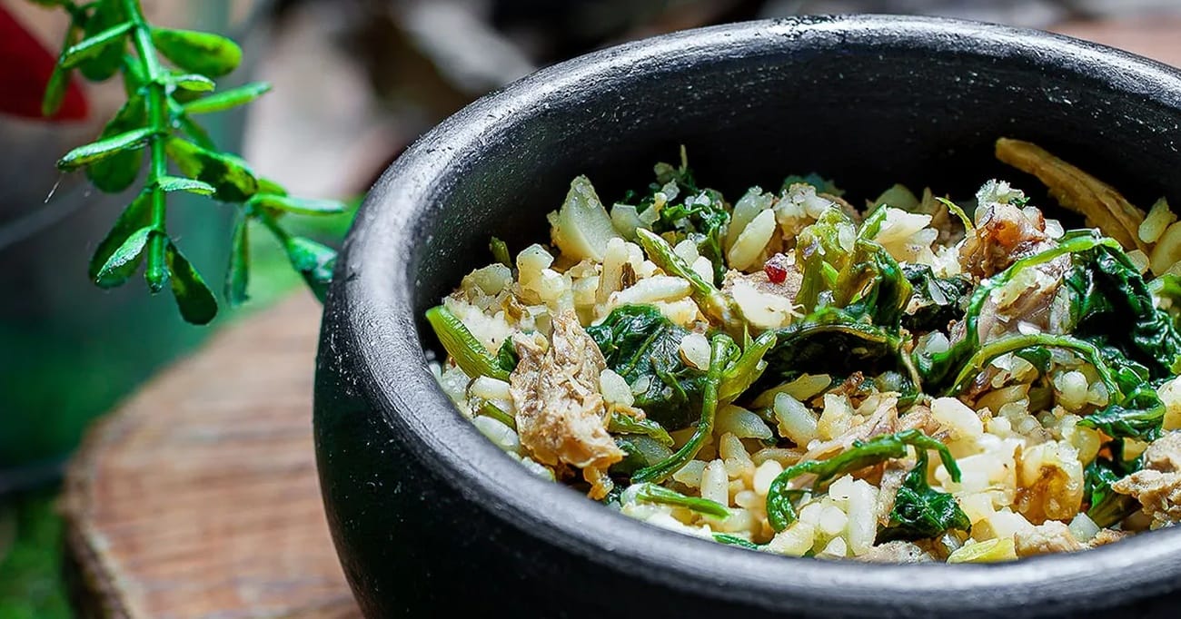 - Verifique se o arroz está cozido e no ponto desejado. Caso contrário, adicione um pouco mais de água e cozinhe até alcançar a textura perfeita. Em seguida, adicione o peru desfiado ao arroz, junto com um pouco mais de tucupi para dar um toque de caldo, e, por fim, adicione o jambu fervido. Misture tudo com cuidado e sirva.