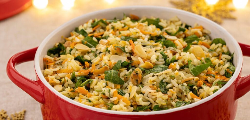 Em meio às festividades de fim de ano, é comum relembrarmos das tradições familiares que nos trouxeram até aqui. Uma destas tradições, para muitas famílias, é o Arroz Natalino, um prato que une sabores e memórias. O aroma do Tempero SAZÓN e do queijo parmesão ralado, a textura crocante das amêndoas torradas e o frescor da rúcula picada criam uma experiência única à mesa. Enquanto prepararmos este prato, somos envolvidos por uma atmosfera acolhedora, que nos remete aos momentos compartilhados com nossos entes queridos. O Arroz Natalino não é apenas uma refeição; é uma celebração de laços e de momentos simples, porém significativos.