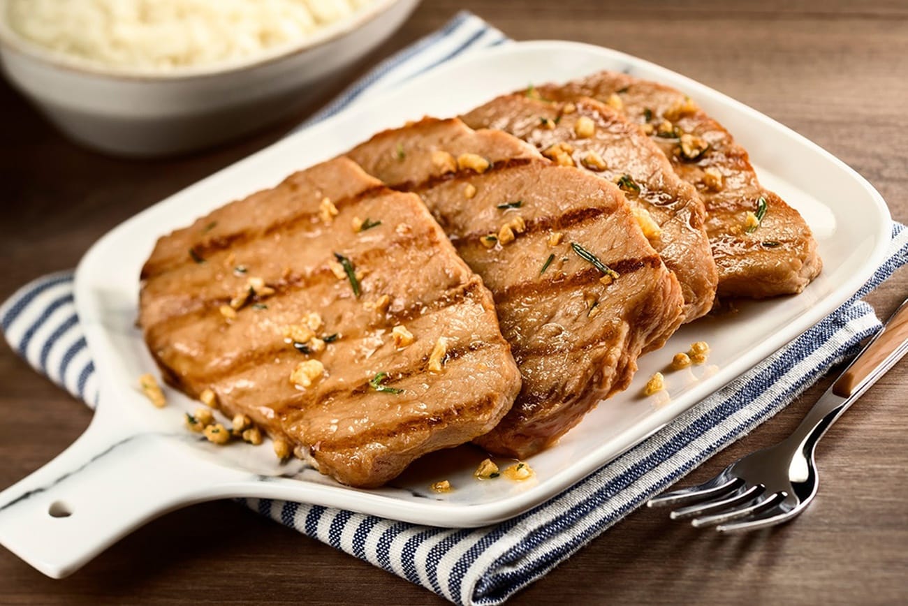 - Coloque os bifes de lombo em uma assadeira e pincele a mistura de azeite, alho e alecrim sobre eles, certificando-se de que fiquem bem cobertos.