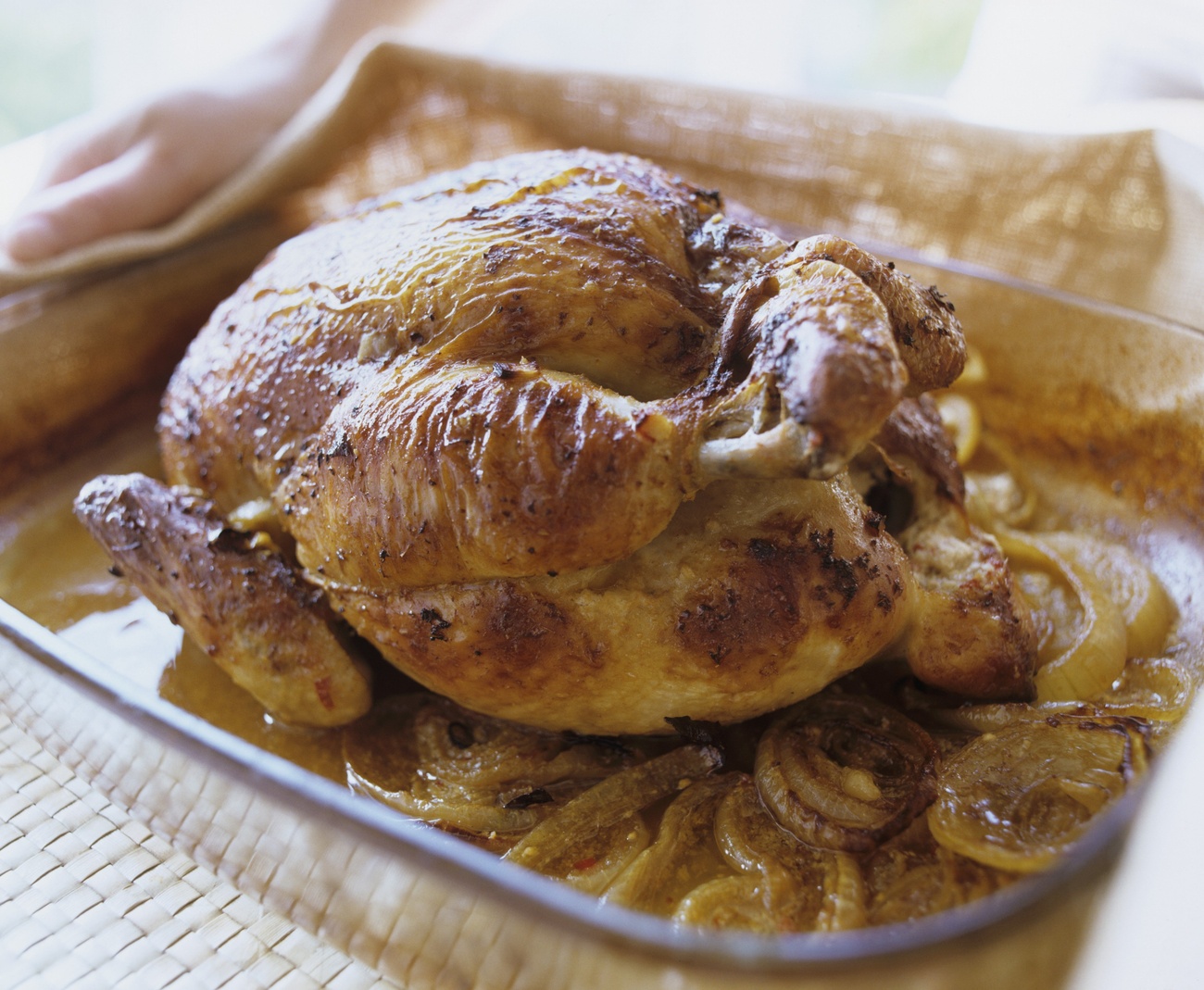 - Coloque o chester em uma assadeira retangular grande, com dimensões de 26 x 38 cm. Cubra a assadeira com papel de alumínio e leve ao forno médio, a 180ºC, por aproximadamente 1 hora. Após esse tempo, retire o papel de alumínio e regue o chester com metade do caldo em que ele ficou de molho. Volte o chester ao forno por mais cerca de 1 hora, ou até que esteja bem assado. Retire do forno e reserve o chester em um local aquecido.