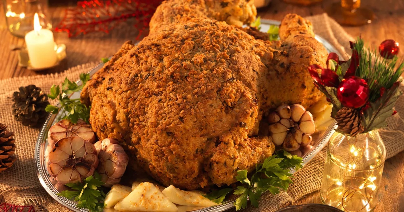 - Retire o papel e, com cuidado, adicione o preparo da crosta em toda ave. Volte ao forno sem o papel até que a crosta doure, por aproximadamente 1 hora e 30 minutos, de acordo com o peso do chester e as diferenças entre os fornos.