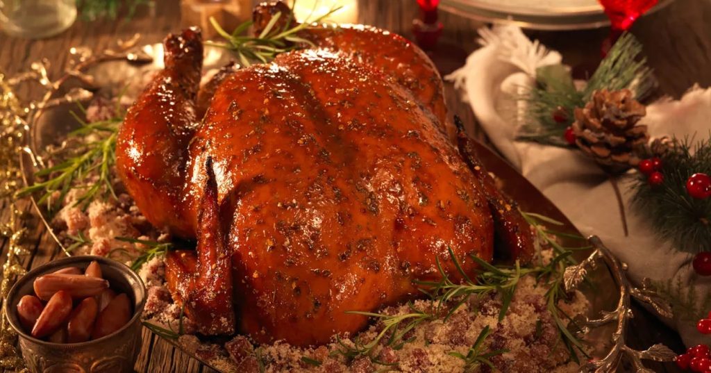 - Recheie o chester com a farofa, enchendo toda a cavidade do peito do chester e leve para assar em forno a 250°C por, aproximadamente, 20 minutos (sem papel-alumínio).