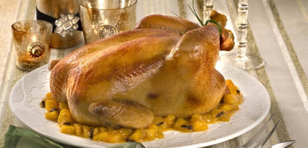 Para garantir que o chester fique ainda mais suculento, não se esqueça de regá-lo com o caldo formado na assadeira durante o cozimento. E, se quiser dar um toque especial, acrescente um pouco de canela em pó ao molho de manga para um sabor ainda mais aromático.