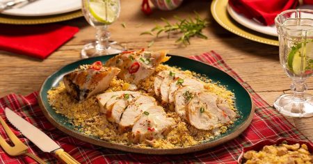 - Asse o Chester conforme indicado na embalagem, coberto com papel alumínio.