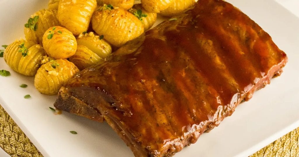 - Retire a assadeira do forno com atenção, tire o papel alumínio da costela e devolva a peça para a assadeira. Passe o molho barbecue em cima da carne e retorne ao forno por 10 minutos para aquecer o molho. Sirva e saboreie! Lembre-se de que, como existem diferenças entre fornos, podem ocorrer pequenas variações no tempo sugerido de preparo.