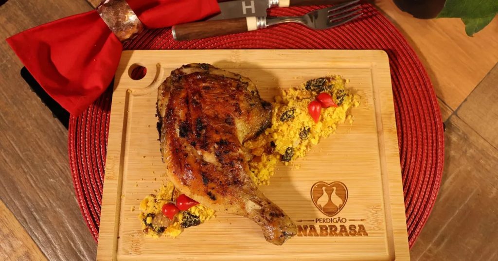 - Como os cortes de Chester Perdigão na Brasa já vem temperados de uma forma delicada e deliciosa, não precisa adicionar mais nada de tempero. Agora é só servir sobre a farofa e se deliciar com essa combinação incrível.