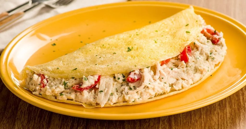 - Espalhe o requeijão cremoso sobre a crepioca e adicione o frango refogado com os tomates. Por fim, salpique salsinha picada por cima para dar um toque fresco.