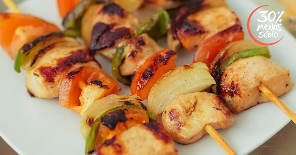 - Depois de montar todos os espetinhos, salpique um pouco de sal sobre eles. O sal vai ajudar a realçar os sabores naturais dos ingredientes.
