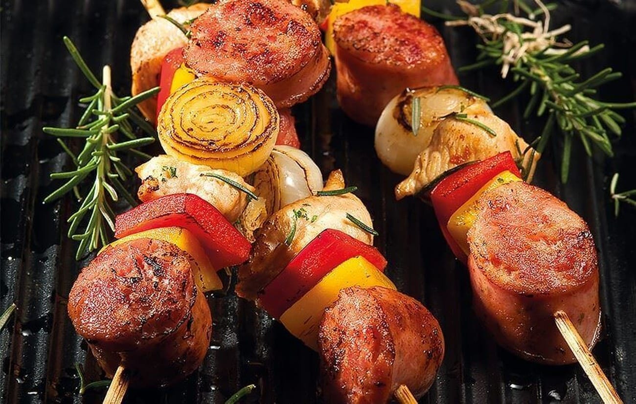 - Escolha sua forma preferida de assar: forno, frigideira, grill ou churrasqueira. Cada uma delas dará um toque especial ao seu Espetinho de frango com linguiça.