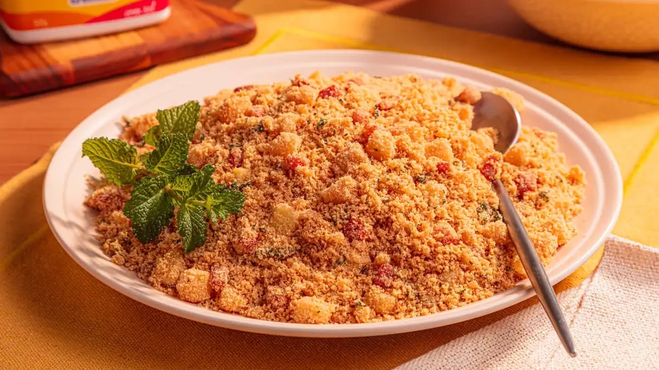 - Cozinhe por mais alguns minutos, mexendo ocasionalmente, até que a farofa esteja crocante e bem dourada.