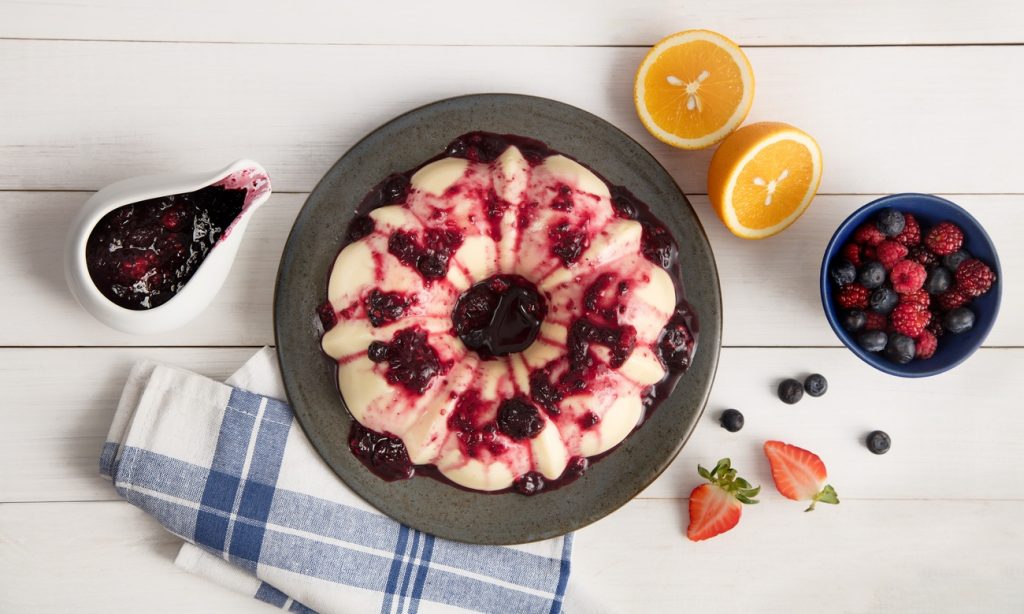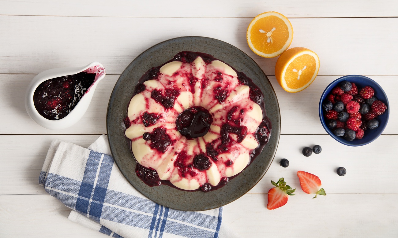- Sirva o flan frio, desenformado, coberto com a calda silvestre de frutas vermelhas.