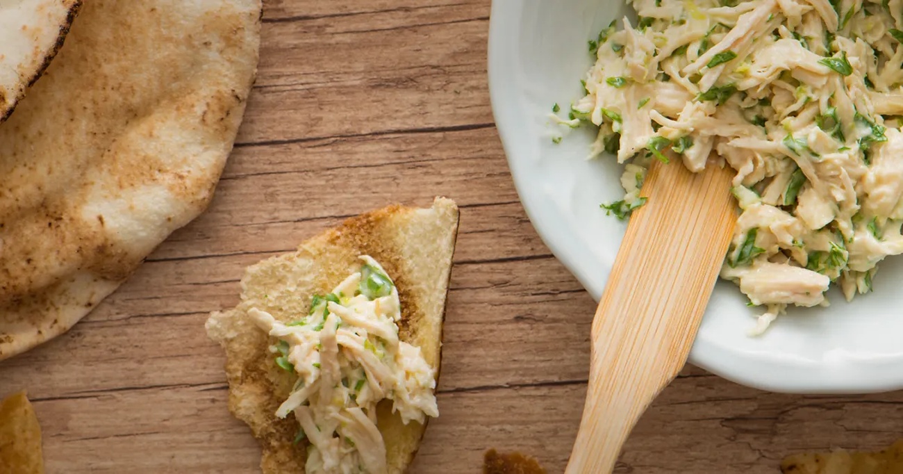 - Sirva com as torradas de pão sírio. Essa combinação é perfeita, pois o pão sírio torrado adiciona uma textura crocante que complementa o frango desfiado de maneira incrível.