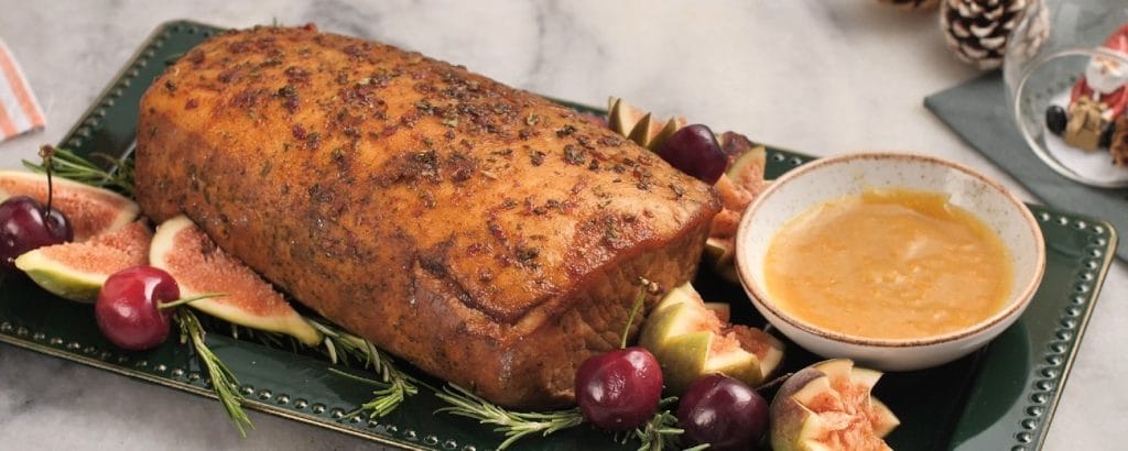 - Leve o lombo ao forno e asse por cerca de 20 minutos por quilo, ou até que a carne esteja cozida e o molho esteja caramelizado. Retire o lombo do forno e deixe descansar por 10 minutos antes de fatiar.