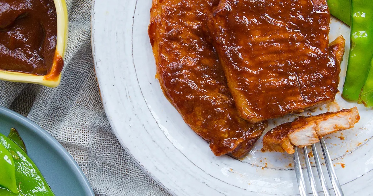 - Tempere as fatias de lombo suíno com o restante do sal. Em seguida, envolva-as com o molho barbecue preparado.