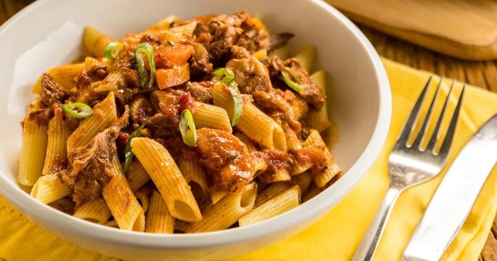 - Cozinhe a massa em água fervente salgada durante o tempo indicado no pacote, escorra e sirva a massa com o molho de carne. O contraste entre o macarrão al dente e o molho rico é simplesmente perfeito.
