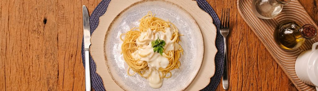 - Finalize o prato com uma pitada de salsa para decorar. Isso não apenas adiciona um toque de cor, mas também um sabor fresco e herbáceo que complementa perfeitamente o macarrão e o molho bechamel.