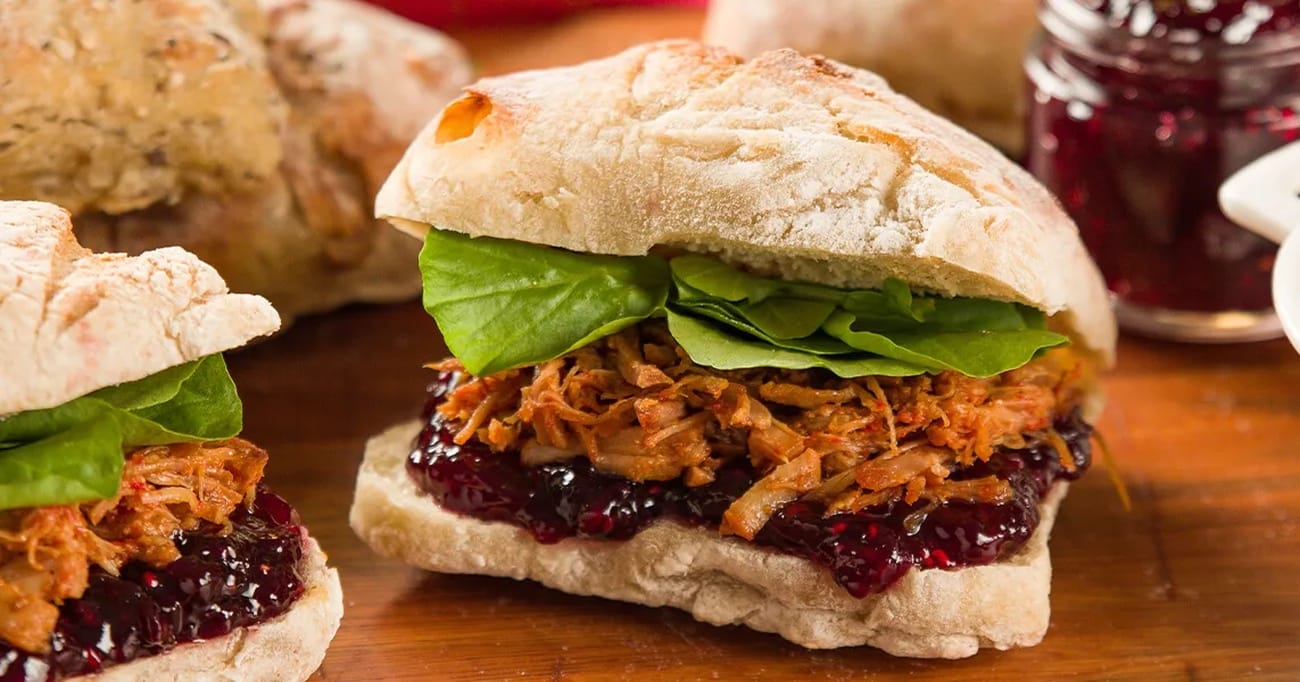 - Abre os pães, espalhe a geleia, adicione o pernil desfiado e as folhas de agrião e sirva.