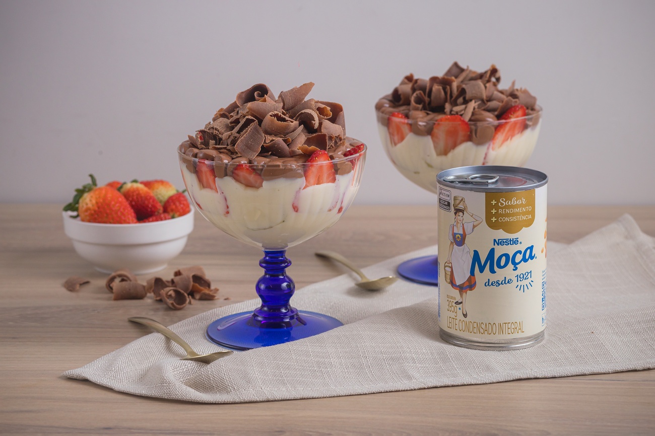 Para um toque especial, experimente adicionar uma camada de frutas frescas por cima do pavê antes de servir. Isso não só adiciona uma textura agradável, mas também um toque de doçura natural que complementa perfeitamente o Chocolate e o Leite MOÇA.