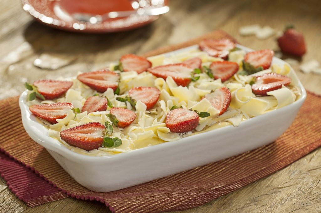 - Decore com as raspas de Chocolate GALAK e os morangos.