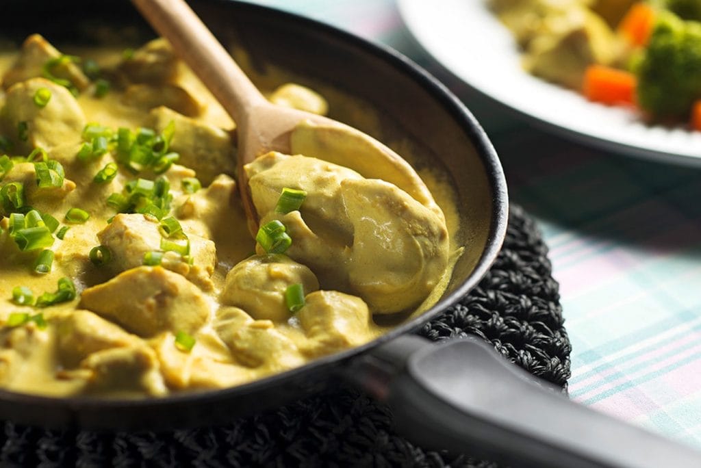 - Coloque os cubos de pernil e o caldo da marinada e deixe cozinhar por 10 minutos.