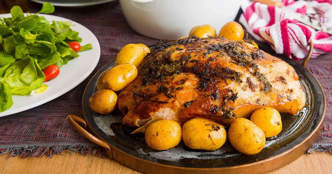- Cubra a assadeira com papel-alumínio e leve ao forno pré-aquecido a 200°C por 1 hora e 30 minutos. Isso ajudará a manter o pernil suculento e a absorver todos os sabores do chimichurri.
