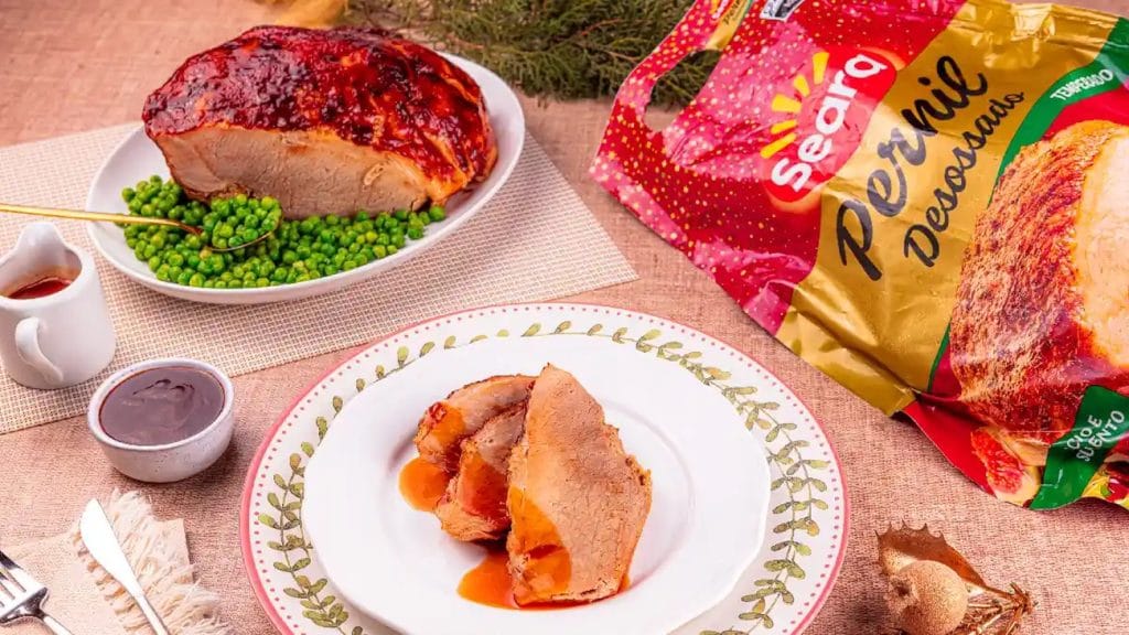 - Leve o pernil ao forno pré-aquecido e asse por cerca de 2 horas e 30 minutos, ou até que a carne esteja suculenta e o glacê esteja crocante e dourado.