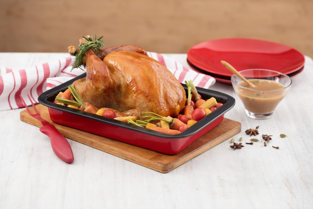 - De vez em quando, regue o peru com o próprio caldo da assadeira. Isso manterá o peru úmido e adicionará sabor ao molho que se forma.