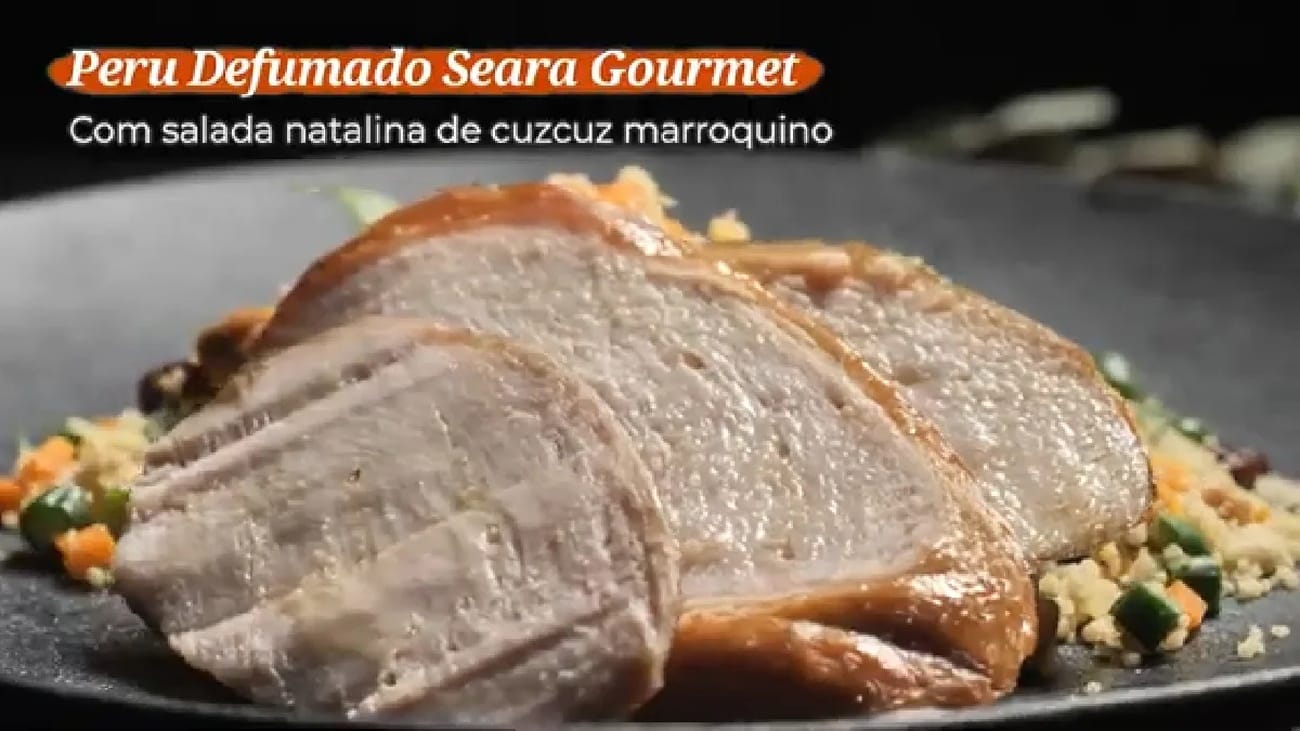 - Quando o peru estiver pronto, retire-o do forno e deixe descansar por cerca de 15 minutos antes de fatiar. Sirva o peru defumado com a salada natalina de couscous marroquino ao lado, garantindo que cada garfo leve um pouco de tudo para a boca.