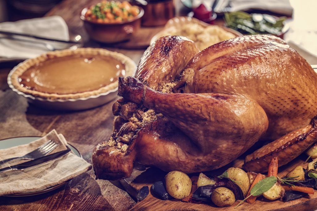 - Leve ao forno médio (180°C) por aproximadamente 1 hora. Depois, vire o peru com o peito para cima e regue com um pouco da vinha-d’alhos.