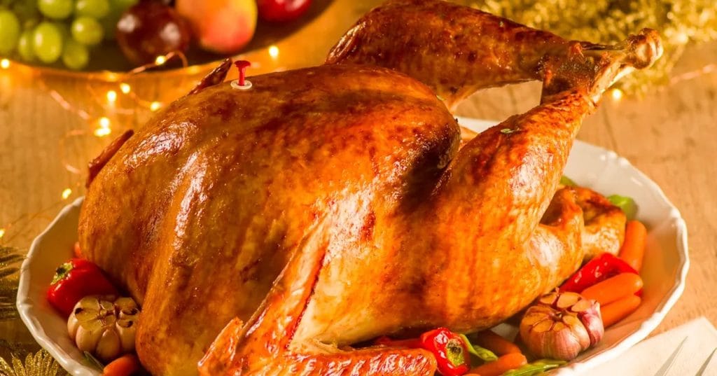 - Sirva em seguida o Peru com os legumes assados.
