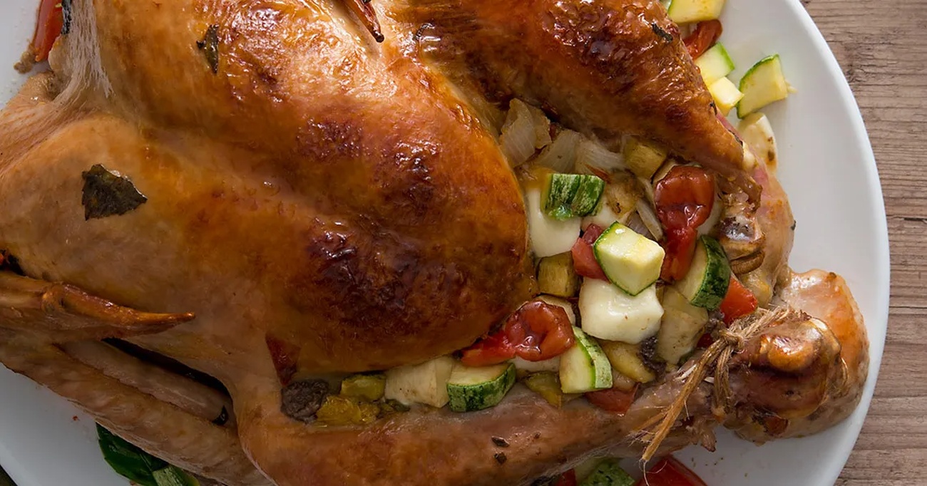 - Coloque a mistura preparada dentro da cavidade do peru, certificando-se de que esteja bem recheado.