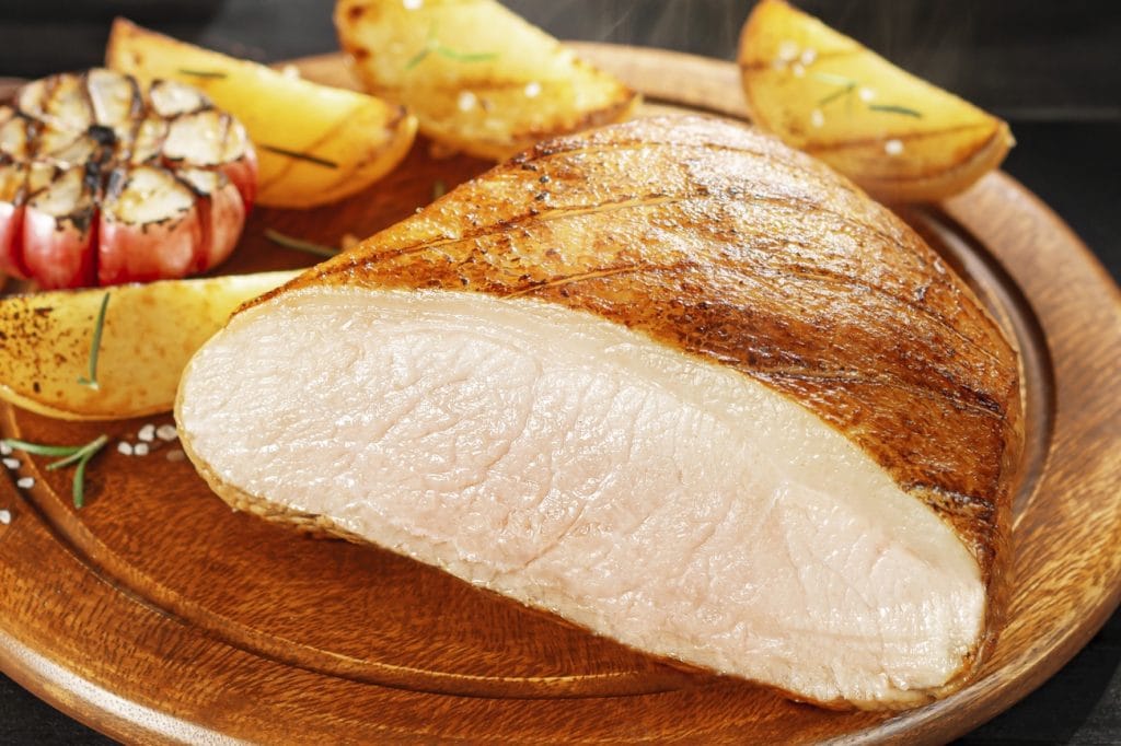 Para obter uma crosta mais crocante, no esquea de pincelar o lquido da marinada por trs a quatro vezes durante o assado. Isso ajudar a manter a pea mida e aportar mais sabor crosta que se forma.