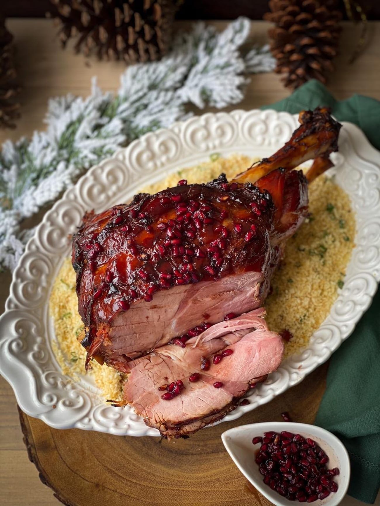 - Por fim, pegue a calda que sobrou, adicione uma colher de vinagre balsmico e as sementes da outra rom. Deixe ferver por alguns minutos para que os sabores se incorporem bem. Sirva o presunto quente, acompanhado do delicioso molho de rom.