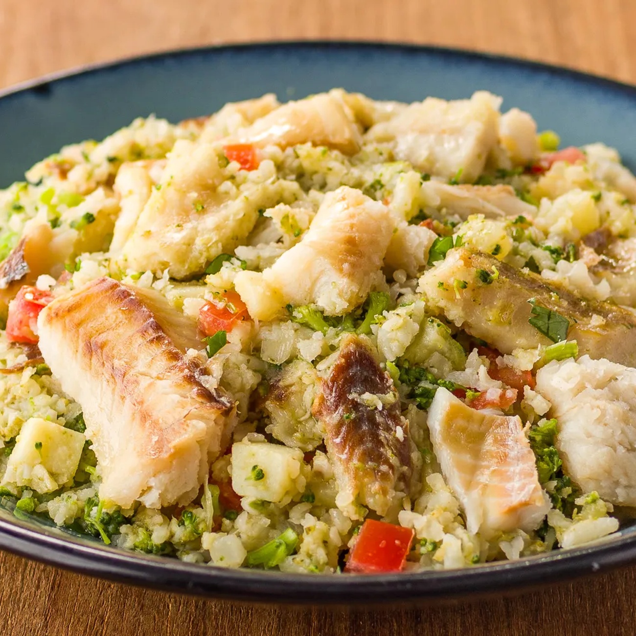 - Acrescente o Polaca do Alasca Desfiado e deixe que doure levemente, mexendo ocasionalmente.