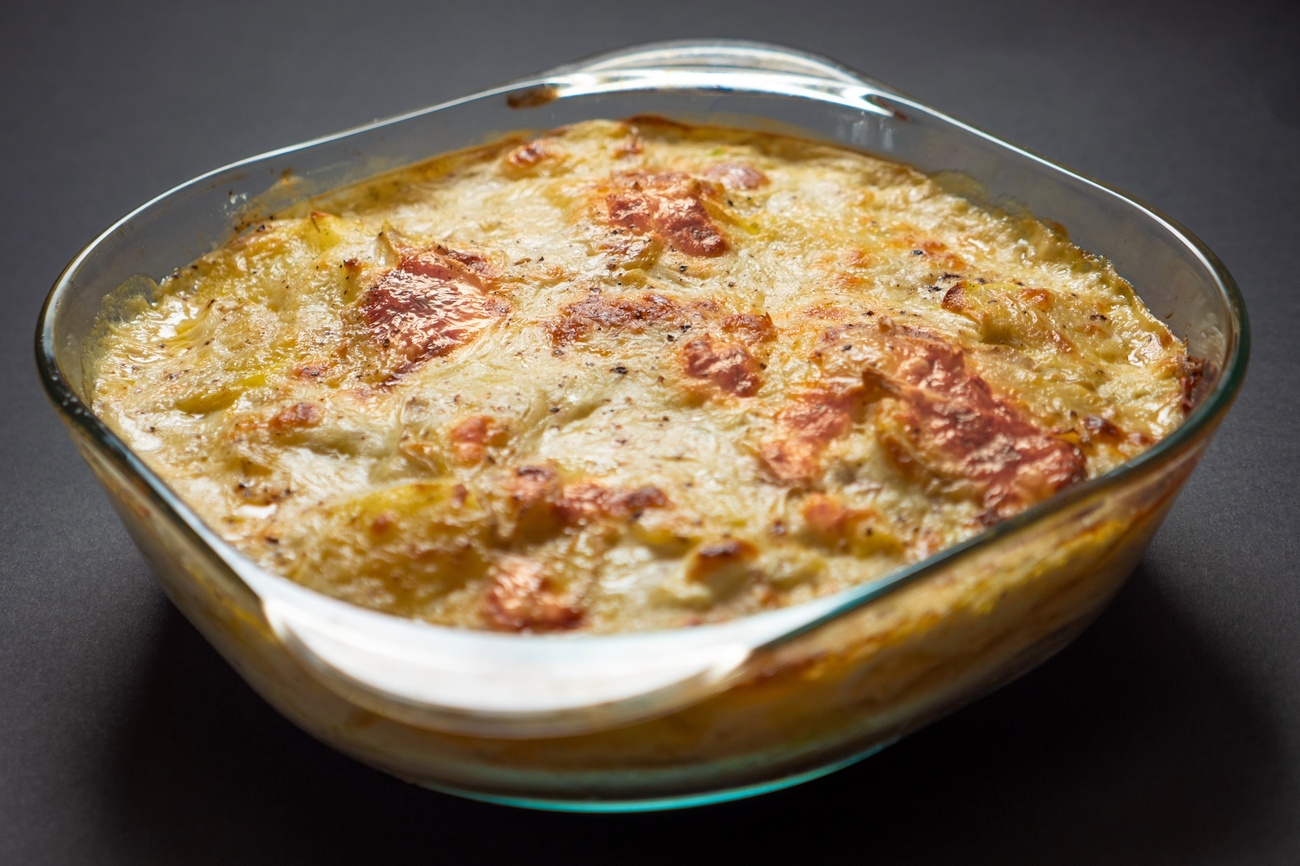 - Unte um refratário com um fio de azeite e transfira a mistura para ele. Certifique-se de espalhar a mistura de forma uniforme.