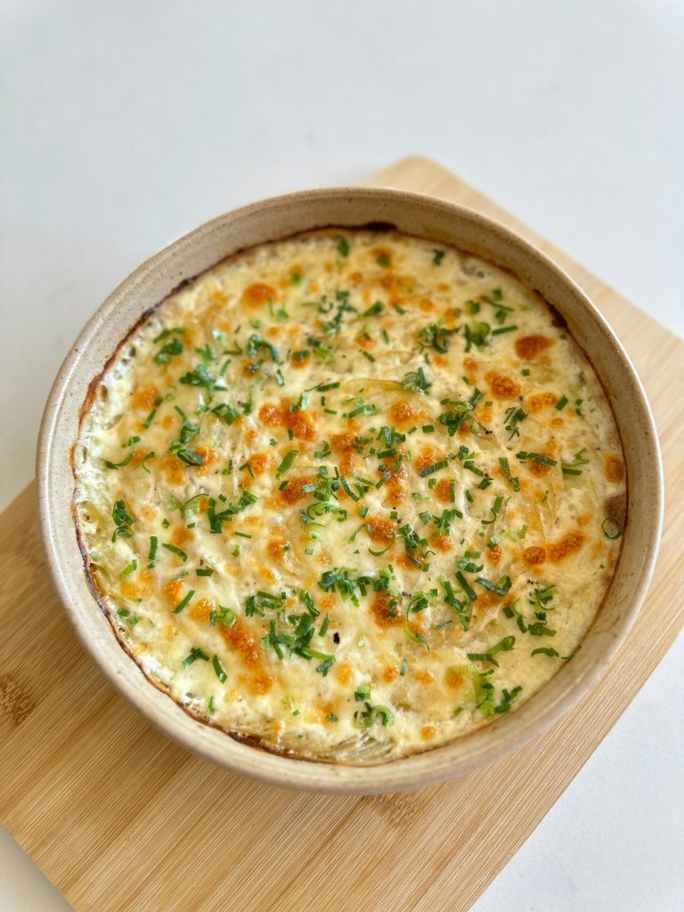 - Cubra a mistura com muçarela ralada e leve ao forno médio (180°C), preaquecido, por 10 minutos ou até que o queijo esteja derretido e levemente dourado.
