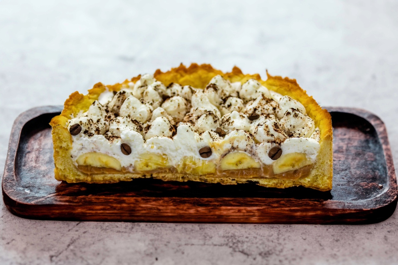 - Coloque o doce de leite esfriado na assadeira forrada com a mistura de biscoito. Adicione as rodelas de banana por cima do doce de leite e finalize com o NESTILLY batido, criando uma camada suave e cremosa.