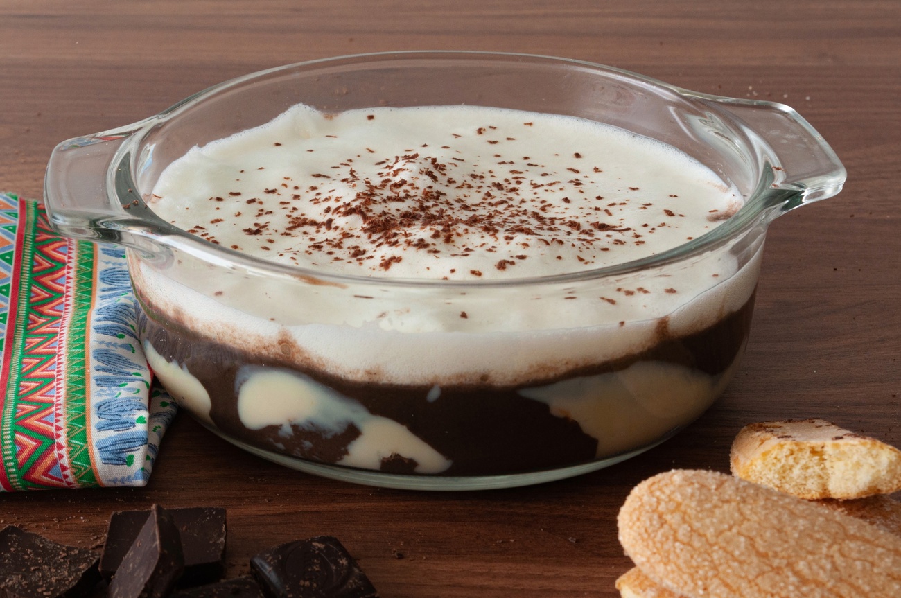- Em um refratário, coloque metade do creme preparado anteriormente, seguido pelo Chocolate NESTLÉ CLASSIC Meio Amargo derretido. Cubra essa camada com o restante do creme e finalize com a cobertura de claras em neve. Para dar um toque especial, decore com confeito de açúcar natalino a gosto.