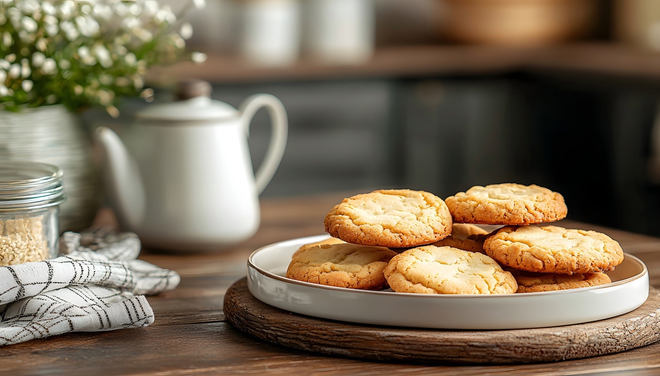 - Disponha os biscoitos cortados em uma assadeira, deixando um pouco de espaço entre cada um para que possam crescer durante o cozimento. Pré-aqueça o forno a 180°C e asse os biscoitos por cerca de 10 minutos, ou até que as bordas estejam levemente douradas. O tempo de cozimento pode variar dependendo do tamanho dos biscoitos e do forno.