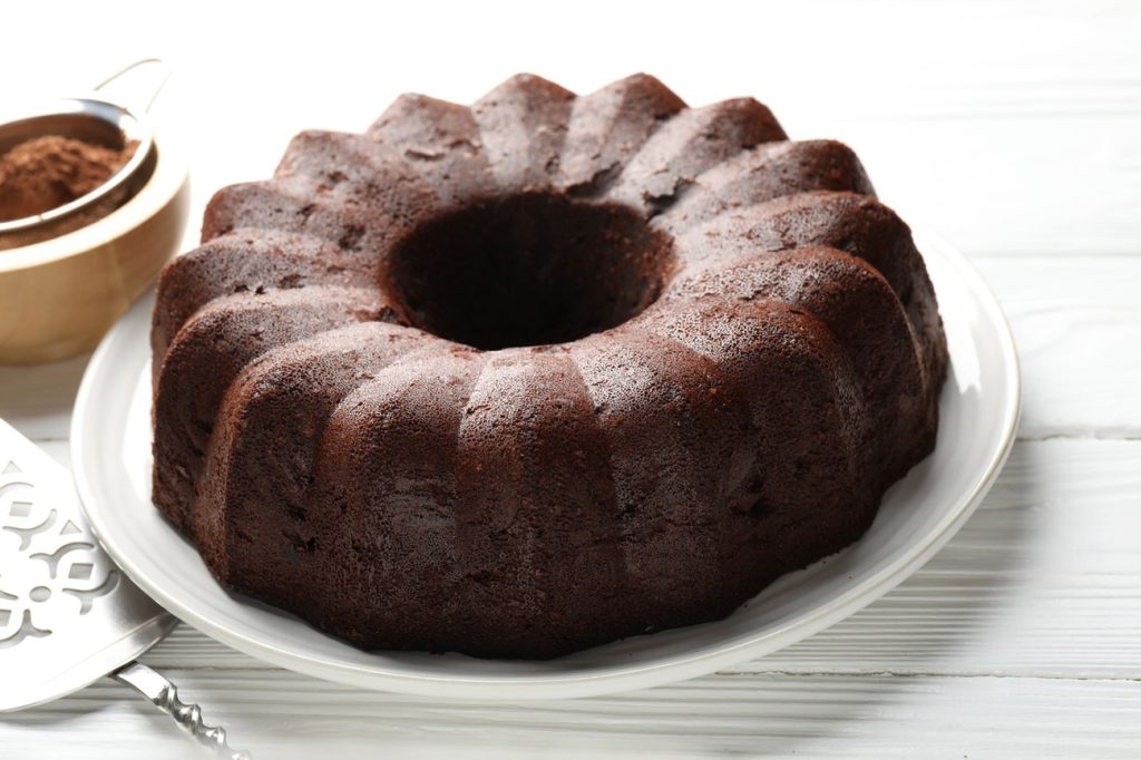 - Despeje a massa em uma forma de furo central (24 cm de diâmetro) untada e polvilhada com Chocolate Em Pó NESTLÉ CHOCOLATERIA. A forma untada e polvilhada evitará que o bolo grude e dará uma textura agradável na parte de fora.