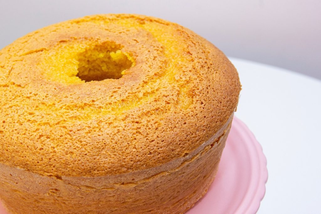 - Unte uma forma de furo central (24 cm de diâmetro) com margarina sem sal e polvilhe com farinha de trigo. Essa etapa é importante para evitar que o bolo grude na forma durante o assamento.