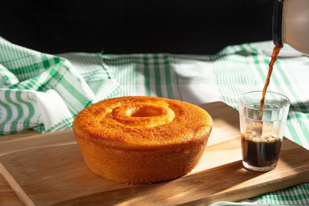 - Leve a forma ao forno e asse por cerca de 40 minutos. Para verificar se o bolo está pronto, insira um palito no centro; se ele sair limpo, o bolo está perfeito.