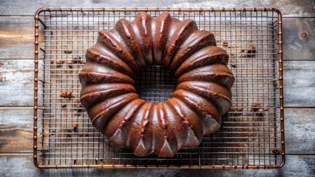 - Retire o bolo do forno, deixe esfriar e desenforme com cuidado para evitar que o bolo se quebre.